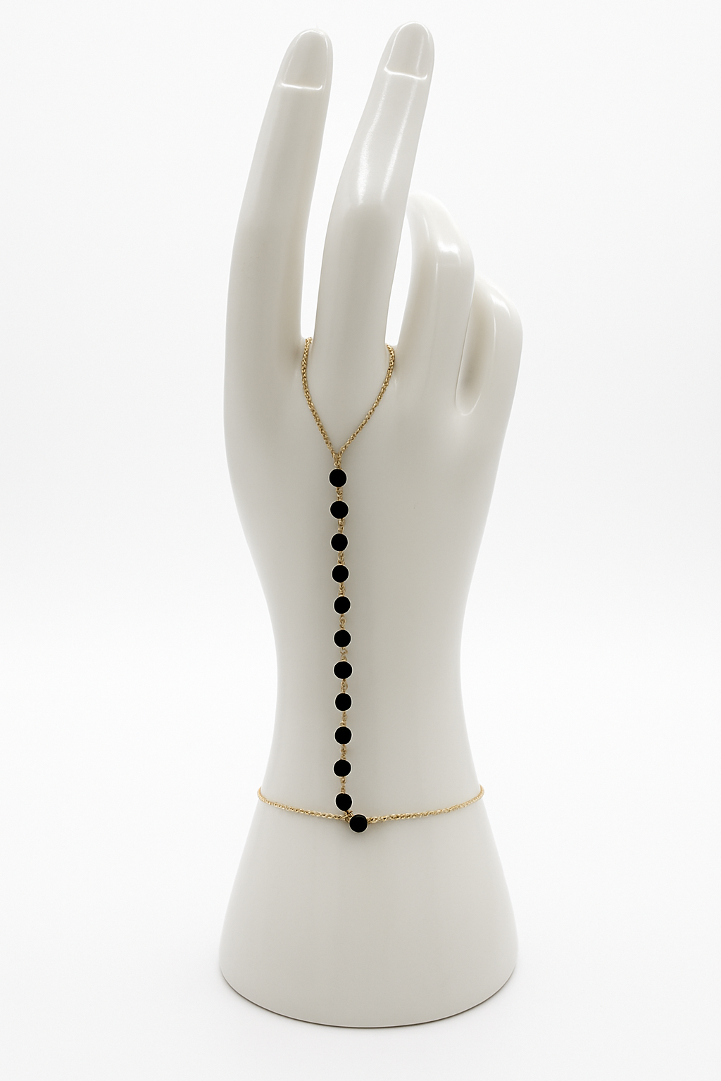 Midnight Mystique – 18K Gold & Black Onyx Hand Chain
